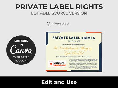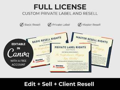 Only if the product level purchased includes Private Label Rights (PLR). Check product levels above or your order downloads for a PLR Certificate if unsure. Otherwise, you must sell or use the content exactly as provided without altering branding or authorship.